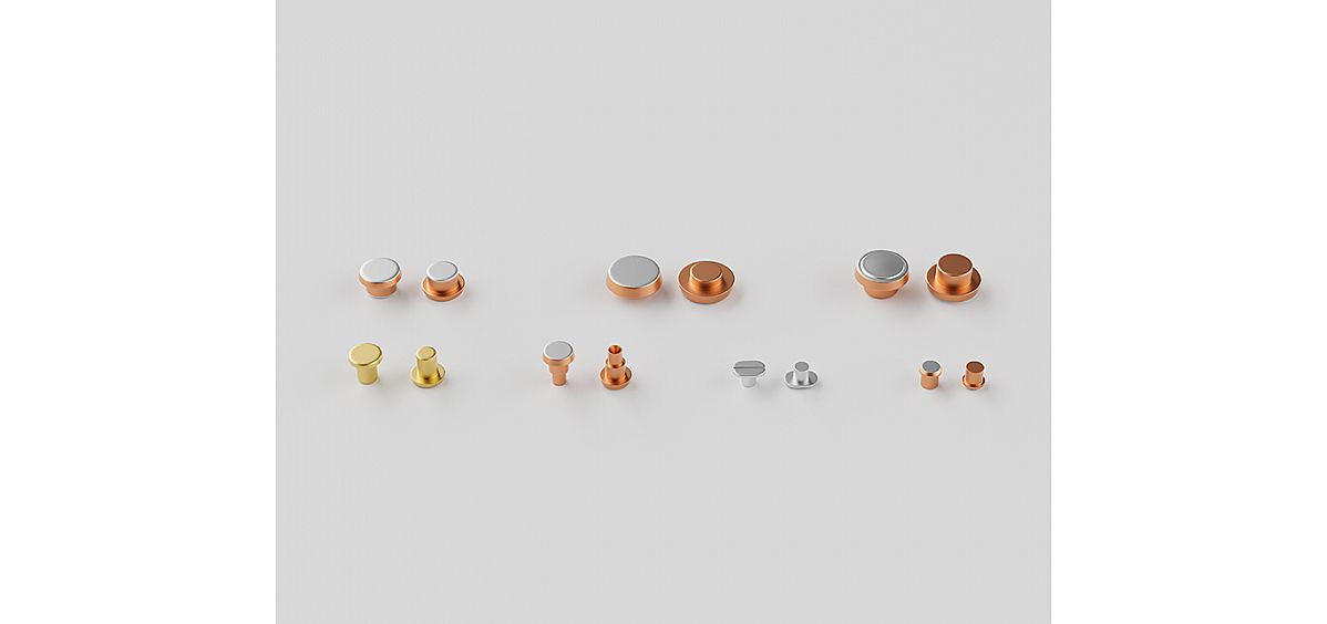 En fonction de l'application, grâce à une conception structurelle et logicielle avancée et à l'utilisation de divers matériaux de contact et formes composites, différents types de contacts à rivets peuvent être produits, notamment des rivets bimétalliques, trimétalliques et solides.
